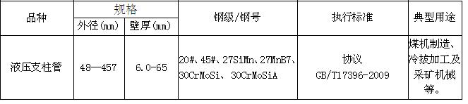用于制作煤矿开采用的液压设备、汽车起重机用的液压缸、柱塞等,其中液压支柱用无缝管需求量 大。用户要求液压支柱管具有很好的使用安全性、可靠性。我心博·心博(中国)官方网生产的液压支柱管具有化学成分波动范围小、有害元素含量低、钢质纯度高、内外表面质量好、几何 尺寸精度高、性能稳定。满足用户提出的液压支柱管使用安全性、可靠性要求。