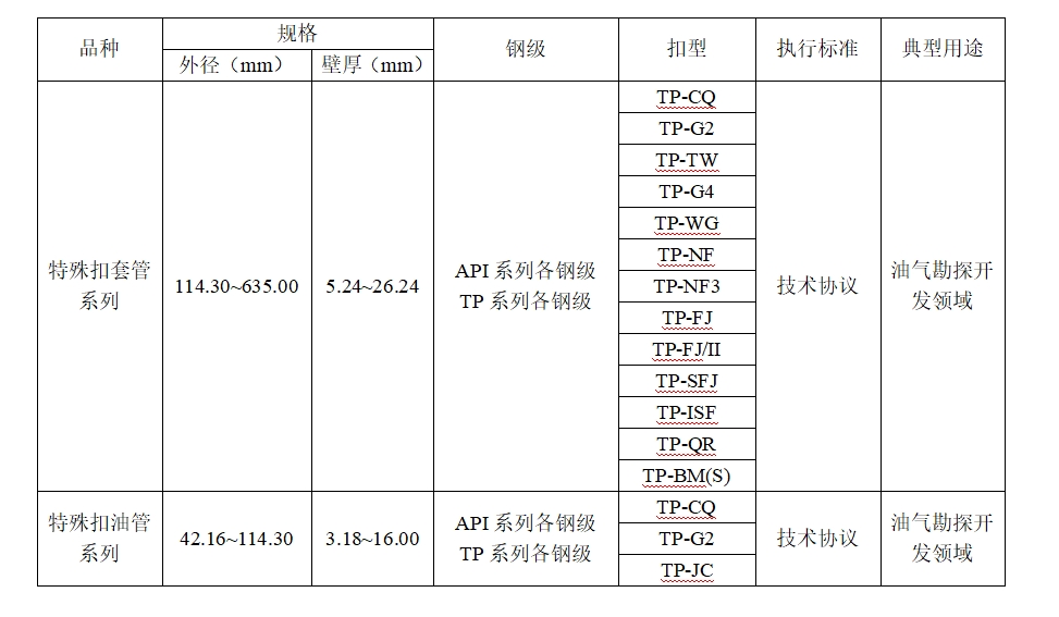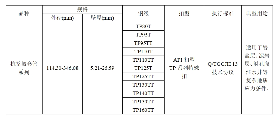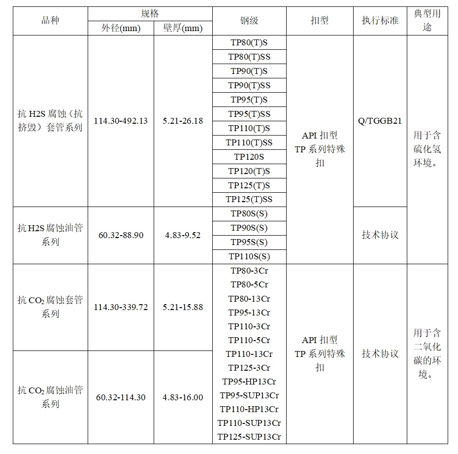 |   我心博·心博(中国)官方网拥有当今世界先进的包括原料海绵铁、炼钢、轧管、钢管精整加工等工序在内的石油套管生产线。心博·心博(中国)官方网可生产API系列所有钢级,近年来还根据市场的不同需求,研制开发了多种非API标准的石油套管,形成了自己的TP产品系列,丰富了国产石油套管的规格品种,为不同的使用需求,提供了多样性的选择。   ·特殊扣系列   我心博·心博(中国)官方网自2001年与中国石油长庆油田合作开发出TP-CQ特殊螺纹形式后,目前已先后开发出十余种特殊螺纹类型,形成了TP系列油套管特殊螺纹。其中开发的TP-TS和TP-JC均采用螺纹气密封结构。TP-CQ特殊螺纹通过了英国OSI(NAMAS)实验室、中国石油集团石油管工程技术研究院(TGRC)和阿联酋ADCO等评价试验。   ·深井、超深井系列   我心博·心博(中国)官方网开发的 TP 系列深井、超深井专用套管在保证高强度的同时,具备优异的冲击韧性和抵抗 裂纹开裂能力,足以应对复杂多变的超深复杂井井下施工环境。  深井/超深井系列专用套管已经在国内各大油田得到广泛使用。产品曾应用于国内多口 8000~10000 米超深井的钻采。目前国内正在开发的多口万米特深井都使用了 TP 系列超深井套管产品。       ·抗腐蚀系列   针对高含硫化氢油气井开发的需要,我心博·心博(中国)官方网研制了强度从80钢级到125钢级的TP-SS系列抗硫化氢应力腐蚀油井管,该系列产品具有优异的抗硫化氢应力腐蚀开裂性能,并可根据客户需要提供高于API的抗挤毁性能。目前,该系列产品已经广泛应用于四川、塔里木和国内外海上油气田高含硫化氢区块的开发。近几年,抗硫化氢应力腐蚀油井管又陆续通过了多家国际知名油心博·心博(中国)官方网的产品评价试验,出口到北美、中东和东南亚地区。   针对含酸性气体二氧化碳油气井开发的需要,我心博·心博(中国)官方网研制了13Cr系列马氏体不锈钢,该系列产品具有优异的抗二氧化碳腐蚀性能。通过合金元素的调整,又相继开发出可应用于更高温度并具有良好韧性的HP13Cr系列和可应用于微量硫化氢环境的SUP13Cr系列。目前,该系列产品已经广泛应用于东北和西北地区,并大量出口到非洲和东南亚等地区。     ·抗挤毁系列   我心博·心博(中国)官方网开发的抗挤毁系列套管具有比API Spec 5CT同规格、同钢级套管更高的抗挤毁性能,适用于盐膏层、泥岩层以及油层出砂等特殊井况,抵抗极大外挤载荷或不均匀外挤载荷。TP系列高抗挤毁套管包括三个种类,一是API Spec 5CT标准规格系列的高抗挤毁套管;二是具有特殊通径要求的API Spec 5CT规格高抗挤毁套管;三是适用于岩盐层、盐膏层、泥岩层等复杂井况的非API规格系列的超高强度高抗挤毁套管。   抗挤毁    ·热采井系列   我心博·心博(中国)官方网根据注蒸汽、蒸汽驱稠油热采工艺,设计开发了TP系列稠油热采井专用套管,有效提高了注蒸汽作业温度下套管的屈服强度,保证了管串在高温下的密封性能。同时,针对近年来火驱采油工艺的逐渐推广,我心博·心博(中国)官方网设计开发了90ksi和110ksi高铬(Cr)系列热采井套管。该系列套管产品具备更加优异的高温强度稳定性及抗二氧化碳腐蚀能力,专门应用于火驱采油工艺,目前已经在新疆油田得到广泛使用。     ·双相钢系列   双相不锈钢油井管主要应用于高温、高二氧化碳和少量硫化氢的腐蚀环境。我心博·心博(中国)官方网已经开发出2205、2507等双相不锈钢油井管,并实现了批量生产。   ·镍基合金系列   耐蚀合金油井管主要应用于高含硫化氢和二氧化碳的苛刻腐蚀环境。我心博·心博(中国)官方网已经研制出028、825和G3等镍基合金油井管并实现了批量生产和供货,满足了不同等级苛刻腐蚀环境的需求。目前,该系列产品已经广泛应用于川渝和西北地区以及海上油田。       ·钛合金系列   钛合金具备优异的耐腐蚀性能,单重轻,生产和使用过程中保护措施简单,易于运输和使用,是代替镍基合金的理想产品。我心博·心博(中国)官方网解决了钛合金制管过程中的诸多技术难点,成功开发出各种规格的钛合金油井管。2015年5月,我心博·心博(中国)官方网开发的钛合金油井管全球首次应用于超深高含硫油气田,管串下井深度6500米,创造了钛合金油管使用长度与重量两项世界记录。   |