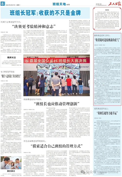 三是树立建设新时代企业班组的工作目标。王泽宇说,“这次大赛,不仅让我开阔了眼界,更让我结识了全国10个赛道的许多顶尖班组长,在他们身上,我看到了新时代产业工人的磅礴力量。同时,通过大赛,我更加深刻理解创新是新质生产力的核心要素,作为一线班组长,在工作中传承优良传统的同时,还要学会思考,敢于创新,运用学到的创新工具和方法提升和解决现场问题的同时,多维度提升班组全员技能,为建设满足新时代企业高质量发展的优秀班组而努力工作。”